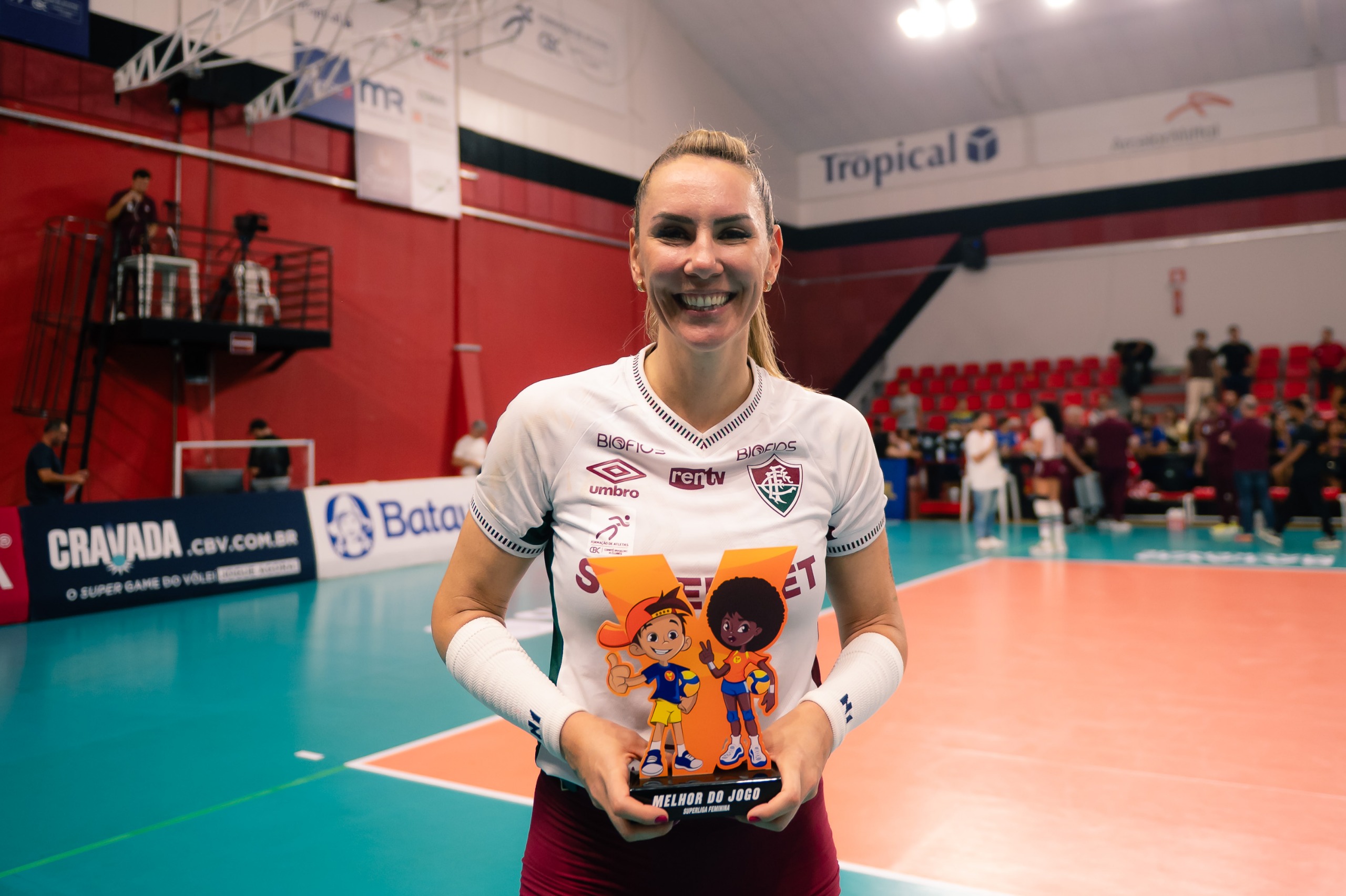 O Fluminense venceu o Batavo Mackenzie por 3 sets a x, parciais de 25/18, 25/20, 19/25, 19/25 e 15/10, pela sexta rodada da Superliga Feminina, nesta terça-feira (18/11), no ginásio do Mackenzie, e conquistou a quarta vitória consecutiva na competição.Com o resultado, o Tricolor chegou a 12 pontos e continua na quarta colocação na tabela de classificação. O Fluminense conquistou sua quinta vitória em seis jogos e o segundo triunfo consecutivo fora de casa.Em boa fase na Superliga, o Fluminense comandou os dois primeiros sets, com sucesso na relação entre bloqueio e defesa e com eficiência nas oportunidades de contra-ataque. A quantidade de erros do Tricolor aumentou nas terceira e quarta parciais e o adversário empatou o jogo. No tie-break, o Fluminense conseguiu retomar o ímpeto do início da partida e venceu o confronto.A levantadora Fabíola foi eleita a melhor jogadora da partida e foi premiada com seu segundo troféu Viva Vôlei nesta Superliga. A oposta Ariane foi a maior pontuadora do Fluminense na partida, com 22 pontos, seguida pela ponteira Valdez, com 15.A equipe comandada pelo técnico Marcos Miranda volta à quadra na próxima segunda-feira (24/11) para enfrentar o Paulistano Barueri, pela sétima rodada da Superliga Feminina. A partida será às 18h30, no ginásio do Hebraica, com transmissão do Sportv 2 e VBTV.O Fluminense começou a partida com: Fabíola, Lara, Lays, Amanda Campos, Valdez, Ariane e MarcelleEntraram: Pietra, Amanda Sehn, Carol Grossi, Camila Paracatu e Vanessa JankeTexto: Comunicação/FFCFotos: Alessandra Torres