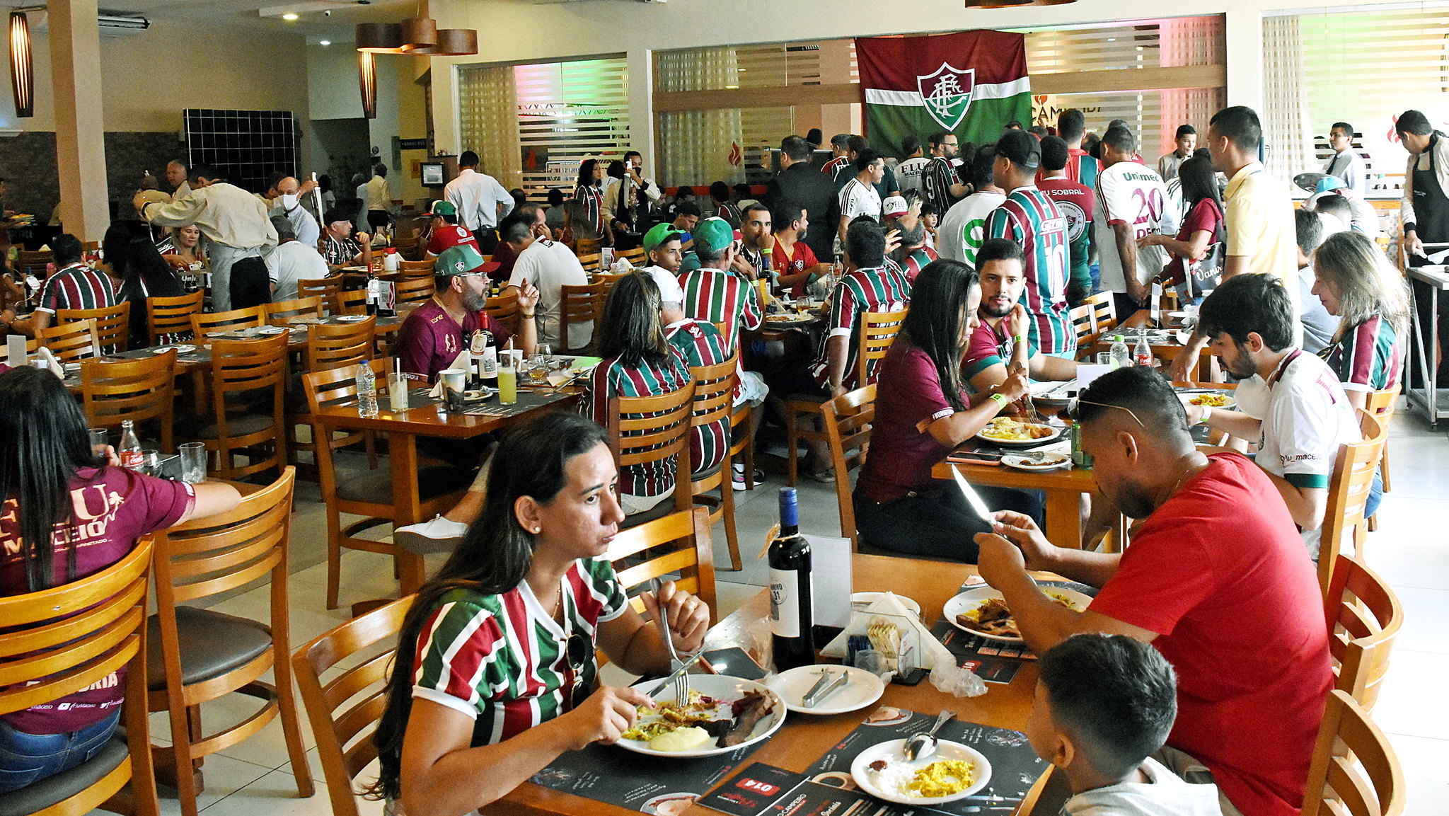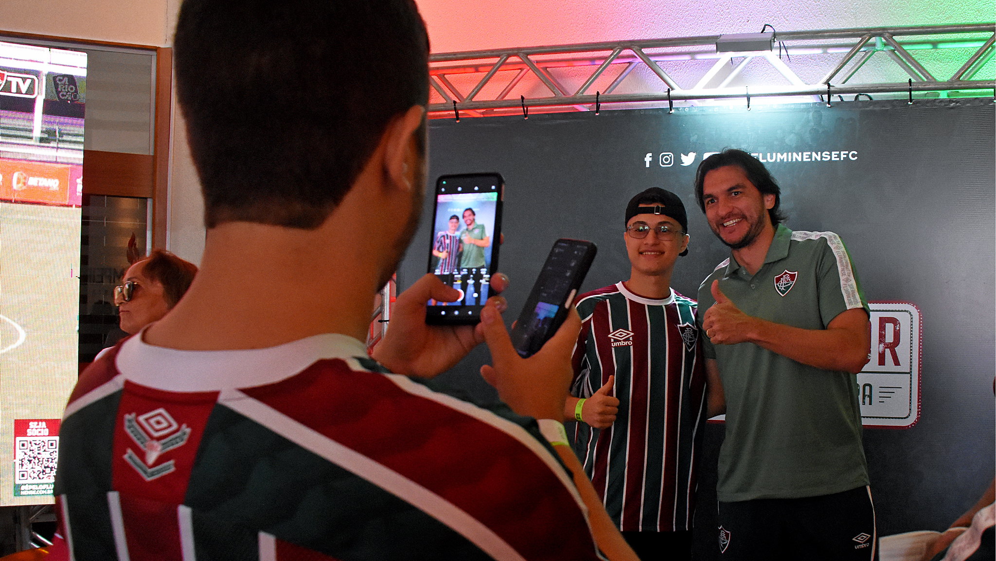 Após mais de dois anos sem edições por consequência da pandemia de Covid-19, o Tricolor em Toda Terra voltou com tudo! O evento coloriu de verde, branco e grená e transformou uma churrascaria no bairro do Cambeba em um verdadeiro Maracanã neste domingo (22/05). Com direito a sorteio de produtos oficiais licenciados e ingressos para sócios, cerca de 500 de torcedores se reuniram e fizeram a festa no encontro antes da partida contra o Fortaleza na capital cearense.A torcida tricolor foi recepcionada por três jogadores do elenco – os zagueiros Matheus Ferraz e David Duarte e o meia-atacante Matheus Martins, que atenderam aos torcedores com muitas fotos e autógrafos e interagiram respondendo a perguntas no palco.“É importante demais para o Fluminense esse tipo de evento. Aqui estão reunidos torcedores de vários lugares do Nordeste, que são bastante apaixonados. Para eles, ter esse contato com os jogadores é fundamental, porque não é sempre que existe essa oportunidade. São torcedores que geralmente acompanham o time de longe, só pela televisão. Então é bacana participar, se aproximar, bater papo com eles. Nós precisamos muito do apoio do torcedor, do carinho. É legal para todo mundo, faz o Fluminense crescer cada vez mais. Para nós, esse carinho e esse apoio muitas vezes geram uma motivação ainda maior”, disse Ferraz.Contratado pelo Fluminense na atual temporada, David Duarte se impressionou com a recepção calorosa que recebeu em Fortaleza:“Eu nunca tinha visto algo assim. Achei muito legal. Sabemos que é difícil para o pessoal do Nordeste assistir a um jogo do Fluminense, são poucos ao longo do ano. Então é legal estar próximo aos torcedores e eles retribuem com muito carinho. Para nós isso é essencial. O Fluminense tem torcedores em todos os lugares do Brasil e proporcionar isso para eles é importante”.O presidente Mário Bittencourt também esteve presente, conversou com os torcedores e prestou uma homenagem ao Coletivo Nordeste Flu, que reúne todas as torcidas do tricolor da região. Ao fim do evento, destacou a importância do resgate do Tricolor em Toda Terra para aproximar o Fluminense dos tricolores que não residem no Rio de Janeiro.“É um dia muito importante para nós. Pudemos agraciar os torcedores daqui e fazer uma homenagem para eles, reiniciando este projeto tão bonito. É um projeto antigo do clube que estamos revitalizando. Queremos promover em vários lugares do Brasil e espero que os próximos sejam tão bonitos quanto este”, disse o presidente.O primeiro Tricolor em Toda Terra de 2022 contou com uma novidade: a presença do comentarista da FluTV e influenciador Phill, que interagiu durante todo o evento e produziu conteúdo para as redes sociais do Fluminense. Durante o evento, houve também a adesão de 55 novos sócios, com direito a impressão de carteirinha no ato da inscrição.“Primeiramente eu gostaria de parabenizar o Fluminense, pois, através do Tricolor em Toda Terra, o torcedor dessas regiões se sente pertencente ao clube. É um evento que tem que continuar, pois aproxima o clube da torcida que está fora do Rio de Janeiro. Gostei muito do evento”, disse Celso Reis, da torcida Maraflu, de São Luís, do Maranhão.Entre os produtos sorteados, o Fluminense distribuiu camisas oficiais, bonés, copos, squeezes e livros que contam a história do clube, além de ingressos para a partida contra o Fortaleza na Arena Castelão. No telão, a FluTV exibiu a vitória tricolor por 2 a 0 no Fla-Flu válido pela Taça Guanabara Sub-20.“Meu sorriso diz tudo, olha só a alegria que estou. Saí de São Luís para um evento tão maravilhoso. O Fluminense é um time que eu amo muito há muitos anos, desde a década de 70. Ser sorteada, para mim, fechou com chave de ouro um dia inesquecível”, disse Iracema Soares, da torcida Ilha Flu, também do Maranhão.A edição de Fortaleza marcou o retorno do Tricolor em Toda Terra, que desde sua criação já passou por quase todos os estados do Brasil e desembarcou também no exterior. Estão previstos novos encontros país afora ao longo da temporada.“Viemos em uma caravana com 50 pessoas. Não esperava que seria tão legal. Foi um dia emocionante para a gente poder estar próximo do nosso time do coração”, disse Luís Pedro, de Campina Grande, na Paraíba.Fotos: Mailson Santana/FFCTexto: Comunicação/FFC