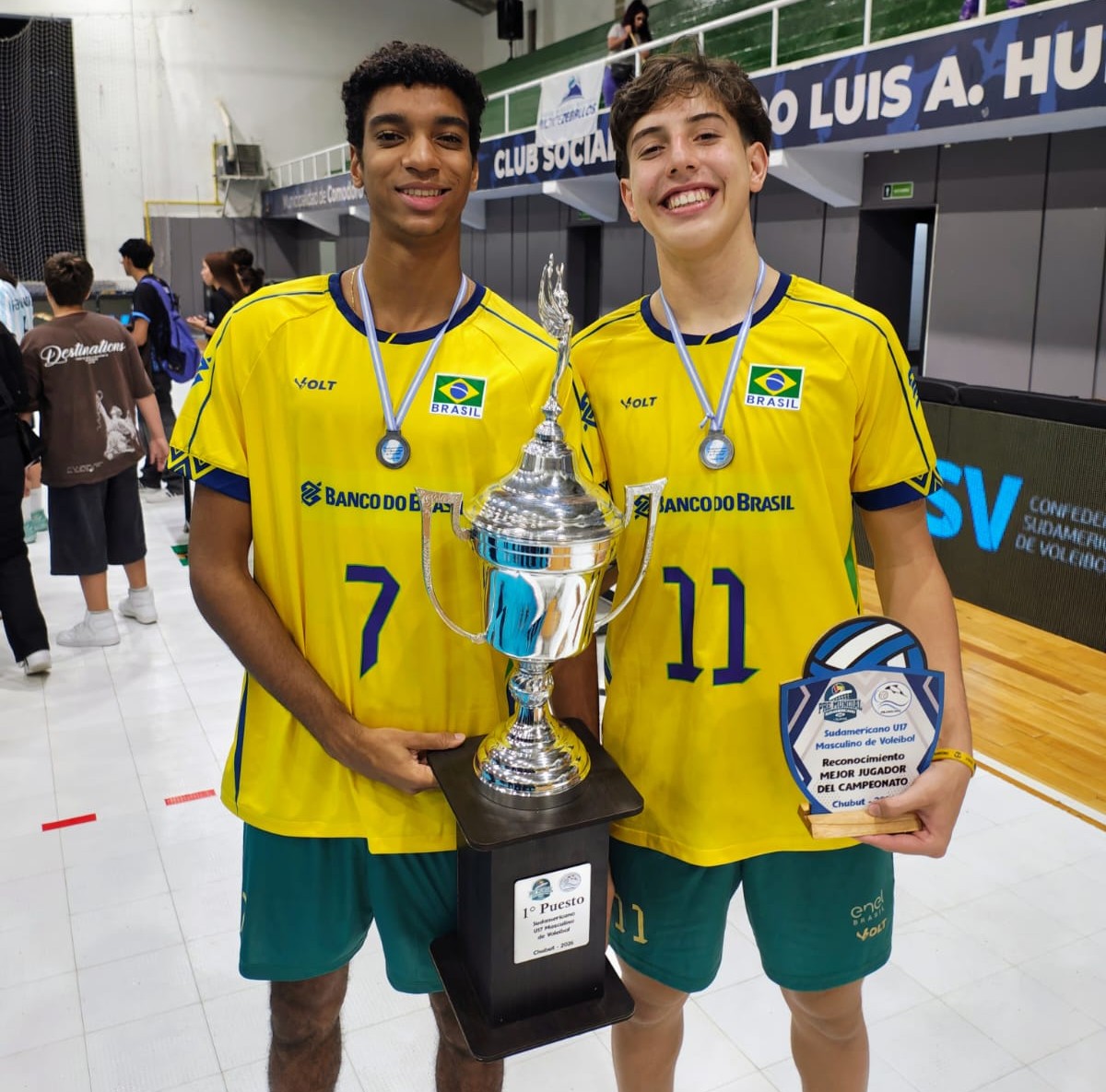 Os atletas do Fluminense Lucca Perazzo e Arthur Lima foram campeões do Sul-Americano Sub-17 de Vôlei com a Seleção Brasileira, neste domingo (18/01). O ponteiro Lucca, inclusive, foi eleito o melhor jogador da competição, realizada em Rivadavia, na Argentina.A Seleção Brasileira conquistou o título de forma invicta após vencer Peru, Chile, Venezuela e Argentina durante a campanha. O resultado classificou o país ao Mundial da categoria, que será realizado este ano, no Catar.O ponteiro Lucca e o oposto Arthur chegaram ao Fluminense nesta temporada e vão reforçar as equipes Sub-17 e Sub-19 do Tricolor.Texto: Comunicação/FFCFoto: Arquivo Pessoal/FFC