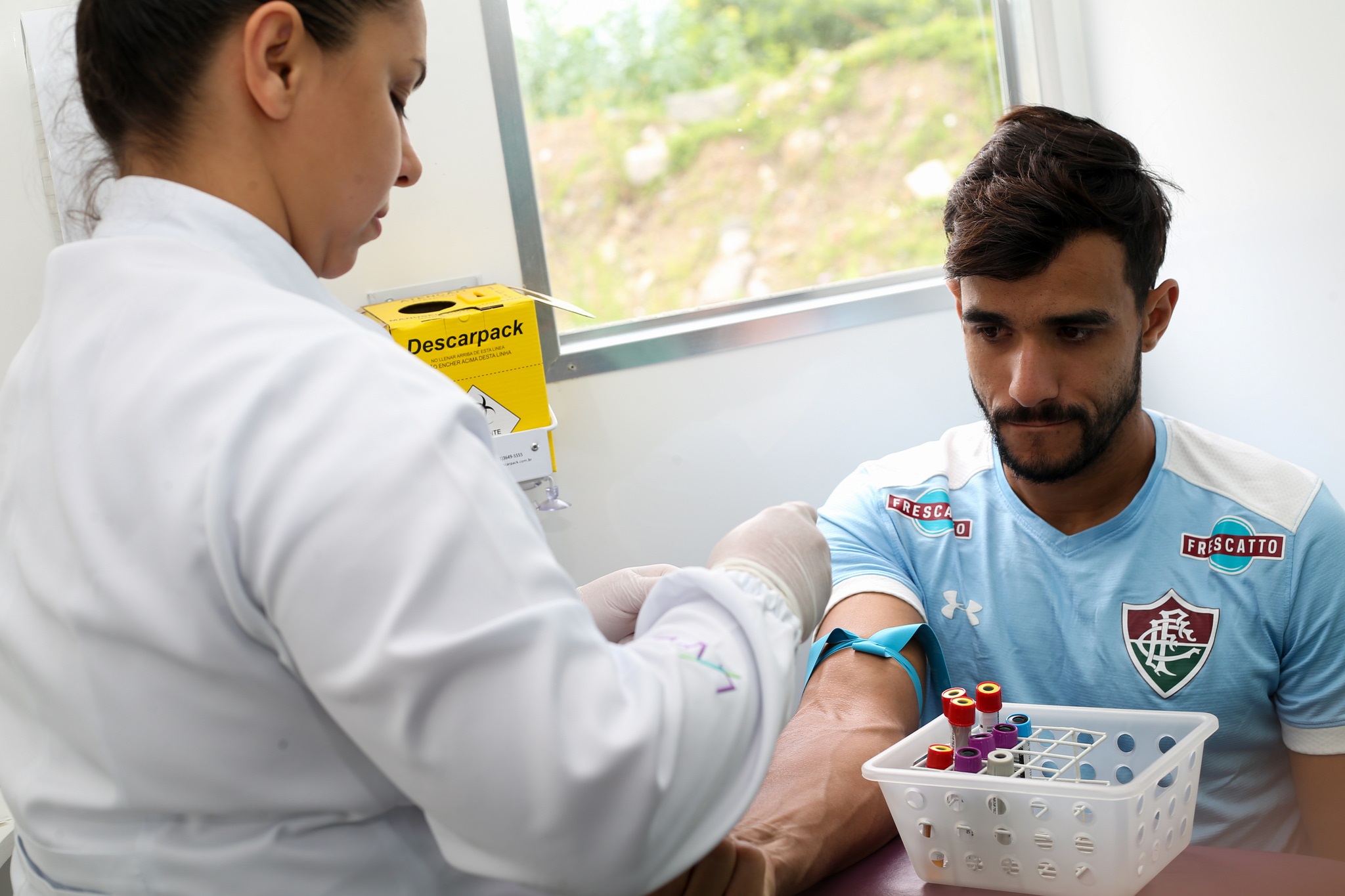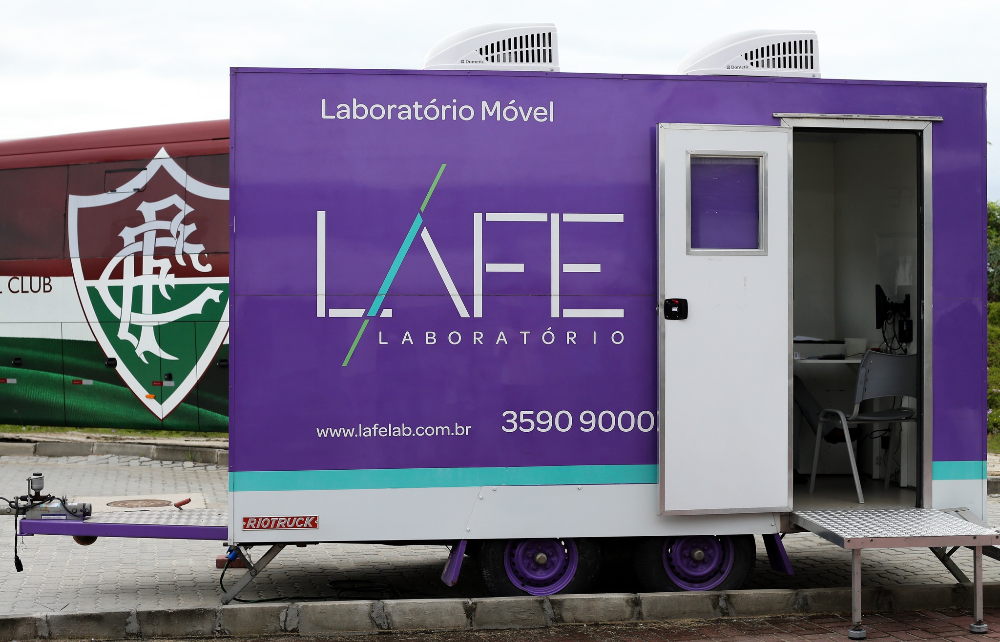 O laboratório disponibilizou um trailer para a realização das coletas e atendeu cerca de 35 jogadores no Centro de Treinamentos da Barra da Tijuca.