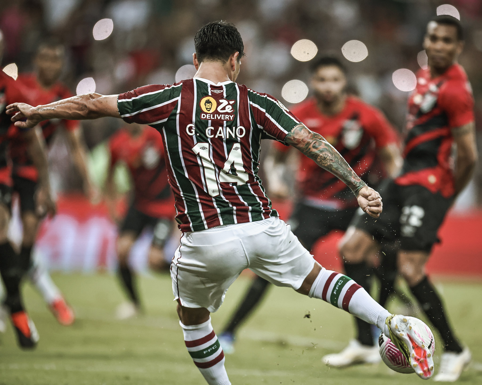 Ele está de volta! Germán Cano voltou a balançar as redes e foi decisivo na vitória do Fluminense por 1 a 0 sobre o Athletico-PR nesta terça-feira (22/10), pelo Campeonato Brasileiro. E não foi um gol qualquer. O ídolo tricolor chegou a 300 na carreira e a 90 pelo clube. Uma noite especial para o Rei da América, que acabou reverenciado por 40 mil pessoas no Maracanã.A marca é mais uma na carreira de um artilheiro que está eternizado na história do clube. Este foi o sexto gol de Cano na temporada. Em 2022, quando desembarcou em Laranjeiras, foram 44, enquanto no ano passado, quando foi protagonista na conquista da América, marcou 40 vezes, quebrando recordes importantes. Com os 90 gols marcados, Cano é o segundo maior goleador do Fluminense no século, atrás apenas de Fred (199).“Foi um momento muito especial, que vou recordar para sempre. Acredito que foi o gol 300 em minha carreira e estou muito contente por isso. Senti um pouco de impotência porque sempre quero estar em campo, ajudar a equipe a ganhar e fazer gols. Lamentavelmente, por minhas lesões foi muito difícil”, disse o atacante.Após o apito final, Germán Cano foi ovacionado por 40 mil tricolores que marcaram presença no Maracanã. O carinho emocionou o atacante, que falou sobre a importante da torcida em sua vida.“A torcida é muito especial. No momento mais difícil, sempre apoiam. O carinho que recebo nas redes sociais, no Maracanã e nas ruas é incrível. Não sei como agradecer o carinho e a paciência que tiveram comigo para poder voltar a fazer gols. É o que gosto e quero fazer. Muitas vezes não é possível, mas quero dar muitas alegrias para essa torcida que já sofreu muito”, declarou.Com o resultado do jogo atrasado da 17ª rodada, o Fluminense chegou a 36 pontos e saltou para a 11ª colocação da tabela de classificação do Brasileirão. O time volta a campo no próximo sábado (26/10), às 16h30, quando enfrenta o Vitória no Barradão, em Salvador, pela 31ª rodada.“Estou muito feliz com o triunfo, com a vitória. Precisávamos escalar várias posições, então estou muito feliz com isso, porque pouco a pouco me sento melhor, estou sentindo menos dores, então espero seguir assim. Estamos muito felizes, porque o time continua ganhando no Maracanã e com todo esse apoio que recebi nesses últimos meses”, concluiu.Não apenas pelo gol, mas por sua dedicação diária, Germán Cano recebeu elogios do técnico Mano Menezes na entrevista coletiva após a partida.“Penso que o futebol quase sempre percorre os mesmos caminhos. Goleadores tem momentos bons e outros não tão bons. Não tem o que fazer a não ser trabalhar. Ele é obstinado, correto. A alegria de todos por ser também ele o autor de gol é em função do que ele é no dia a dia, exemplo de profissional. Essa homenagem do torcedor é muito justa. Assim, a confiança começa a voltar”, disse.Confira as principais marcas de Cano pelo Fluminense:- Segundo maior artilheiro do Fluminense no século (90 gols)- Artilheiro da Conmebol Libertadores 2023 (13 gols)- Maior artilheiro da história do Fluminense na Libertadores (17 gols)- Maior artilheiro da história do Fluminense em uma edição da Libertadores (13 gols em 2023)- Maior artilheiro da uma edição da Libertadores no século XXI (13 gols em 2023)- Maior artilheiro da história do Fluminense em uma mesma temporada em jogos oficiais (2022, 44 gols)- Maior artilheiro do Fluminense em uma temporada desde 1970 (2022, 44 gols)- Maior artilheiro estrangeiro do Fluminense em uma única temporada (2022, 44 gols)- Terceiro estrangeiro com mais gols pelo Fluminense (90 gols)- Artilheiro do Carioca 2023 (16 gols)- Artilheiro do Campeonato Brasileiro 2022 (26 gols)- Artilheiro da Copa do Brasil 2022 (5 gols)- Artilheiro do Brasil em 2022 (44 gols)- Maior artilheiro da história do Fluminense em uma edição do Brasileirão (2022, 26 gols)- Estrangeiro com mais gols em uma edição do Brasileiro por pontos corridos (2022, 26 gols)- Primeiro estrangeiro artilheiro do Brasileirão desde 1972 (2022)- Maior artilheiro em uma temporada no Brasil desde 2008 (2022)- Segundo maior artilheiro do Fluminense no "Novo Maracanã"Prêmios individuais- Bola de Prata de melhor atacante do Brasileirão 2022- Prêmio Brasileirão de melhor atacante (2022)- Craque da Galera do Brasileirão 2022- Melhor atacante do Carioca 2023- Craque do Carioca 2023- Rei da América 2023Fotos: Marcelo Gonçalves/FFCTexto: Comunicação/FFC