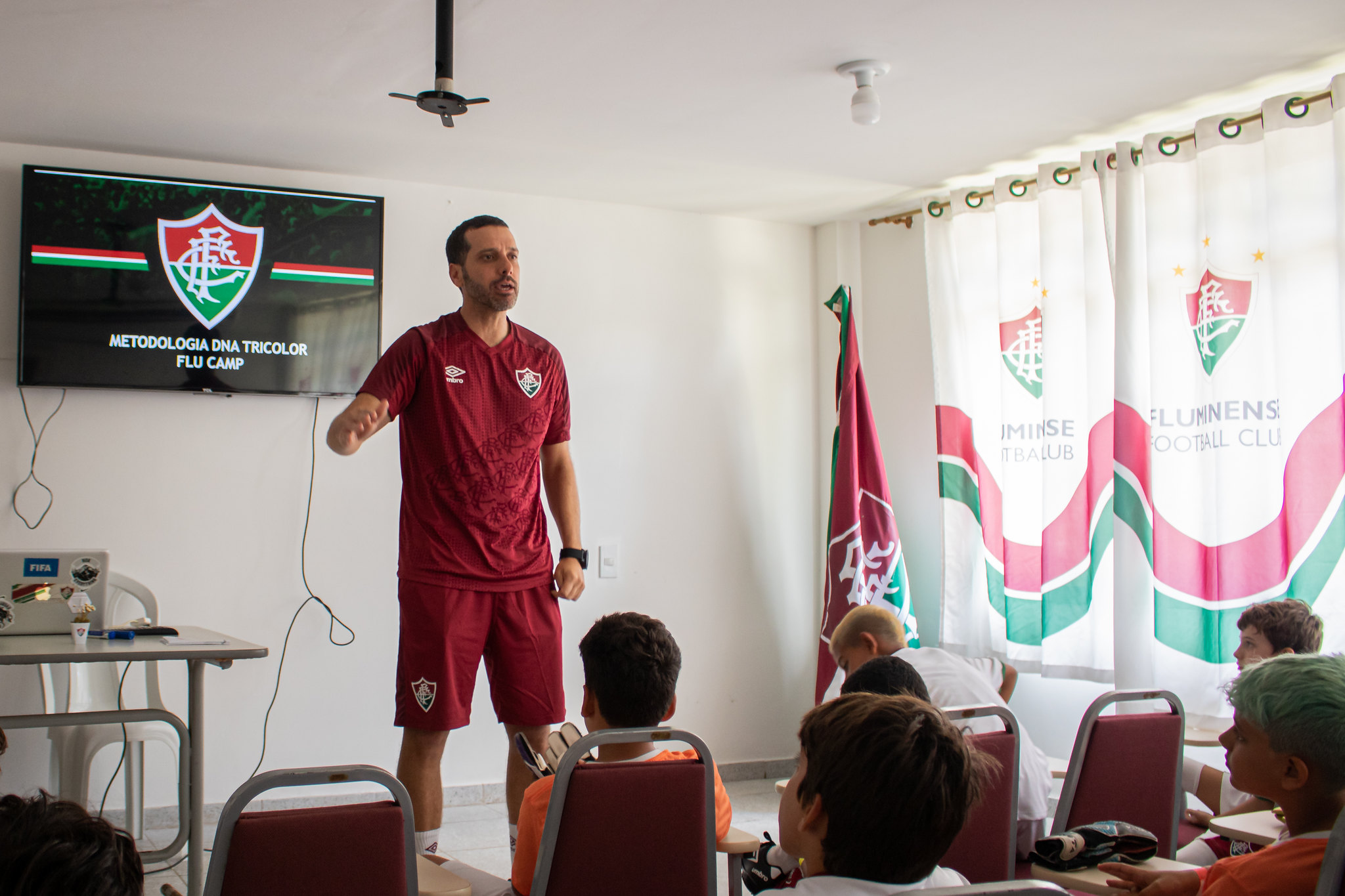Revigoradas com um bom lanche, as equipes Sub-7, 9, 11 e 13 se dividiram em ônibus rumo ao Centro de Treinamento Vale das Laranjeiras, em Xerém. No auditório do local, tiveram um encontro com o coordenador metodológico do Flu, Guilherme Torres."Busquei apresentar na palestra os nossos valores e como desenvolvemos os Moleques de Xerém, mostrando aos meninos o que representa vestir a camisa do Fluminense. Foi uma experiência extremamente gratificante", disse ele.