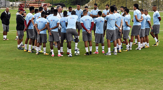 Técnico Abel Braga conversa com jogadores antes do início do treino