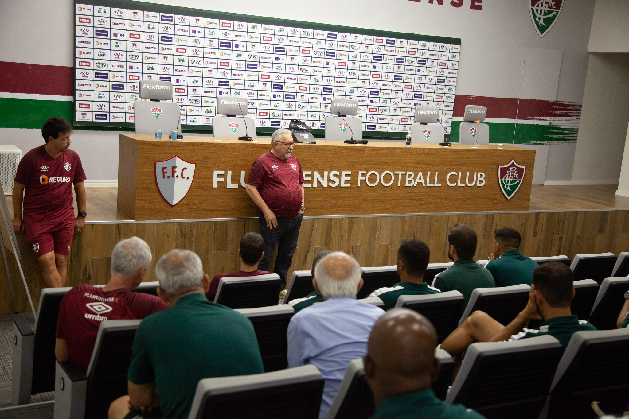 O Fluminense deu mais um importante passo em seu constante processo de integração do futebol profissional com as categorias de base. Nesta quarta-feira (08/02), Fernando Diniz recebeu no Centro de Treinamento Carlos Castilho todas as comissões técnicas de Xerém para um encontro que abordou aspectos fundamentais para um trabalho multidisciplinar que renda cada vez mais frutos ao clube. Na palestra, o comandante da equipe profissional do Tricolor expôs suas principais ideias e listou valores que considera vitais para o sucesso deste caminho que vem sendo trilhado.“Foi uma conversa para integrar mais, para haver uma conexão maior entre a base e o profissional. Eu sempre gosto de olhar para as categorias de base, respeitar os profissionais que trabalham lá e poder ajudar naquilo que for possível. Essa troca sempre ajuda muito a nós também”, afirmou o técnico tricolor.Diniz fez questão de ressaltar que a proposta do projeto não é implementar uma filosofia única de jogo, mas sim estabelecer uma metodologia de trabalho com objetivos convergentes a partir de princípios fundamentais.“No fundo, a ideia é nomear alicerces básicos, e um deles é a liberdade para o treinador trabalhar. Não há uma metodologia fechada. A gente tem que dar liberdade para os técnicos serem criativos na base, mas há alguns pilares centrais que podemos implementar tanto aqui quanto na base. Acho que é um caminho, sem castrar a criatividade do trabalho deles. Temos, na verdade, que estimular para que eles consigam produzir cada vez melhor”, concluiu.Antes de chegar aos treinadores, a integração entre futebol profissional e categorias base já vinha avançado há algum tempo no Fluminense em outras áreas. Departamentos como fisioterapia, preparação física e fisiologia já implementaram metodologias que englobam todas as categorias. Responsável por elaborar e implementar o projeto, o diretor executivo de futebol do Flu, Paulo Angioni, demonstrou satisfação com o entrosamento entre as comissões.“A finalidade é dar continuidade à integração. A gente já tem feito isso através de outros mecanismos, como era com o Sub-23 e agora com a equipe Sub-20 vindo treinar aqui mais regularmente no CT do profissional. Isso também aproxima as equipes, como nos casos do Nilton Petrone (Filé), Juliano Spineti, Marcos Seixas e, agora, o Fernando Diniz. Essa apresentação foi muito mais uma necessidade de mostrar aos profissionais da base a forma como ele olha o futebol e seus conceitos. Então, fundamentalmente isso nada mais é do que um processo continuado de proximidade da base com o profissional”, afirmou Angioni, antes de destacar o papel de Fernando Diniz neste projeto:“A importância dele nesse processo é toda. Porque o Diniz abraça muito os jogadores que estão em Xerém, sempre traz garotos para treinarem aqui. Cada vez mais a gente aumenta o nosso quadro de atletas da base trabalhando em cima, incorporando à equipe profissional, alinhado ao nosso objetivo de termos pelo menos 50% do elenco formado por meninos da casa”.Recém-chegado ao Fluminense, o técnico do time Sub-20, Ricardo Resende, vem periodicamente acompanhando os treinamentos da equipe profissional com Fernando Diniz no CT Carlos Castilho. Para ele, a oportunidade de aprendizado é combustível para a evolução da base tricolor, tanto no desempenho em competições como na formação de jovens jogadores.“Hoje foi um momento especial proporcionado pelo Fluminense, em que pudemos entender as ideias do Fernando Diniz. Como treinador do Sub-20, eu já vinha acompanhando alguns treinamentos, e a integração está sendo muito boa. Hoje todos os profissionais da base tiveram a oportunidade de conhecer melhor os conceitos dele. Espero que essa integração siga assim e ajude a fortalecer o trabalho que é feito em Xerém, para que os profissionais da base possam revelar ainda mais jogadores para dar alegrias ao nosso torcedor”, avaliou.Antes de se encontrarem com Fernando Diniz nesta quarta-feira (08/02), os profissionais da base passaram nos últimos dias por duas reuniões do “Programa de Formação Continuada de Xerém”, que tem como objetivo atualizar a metodologia de formação de jogadores. Na segunda-feira (06/02), quem comandou a atividade, que contou com as comissões técnicas das categorias Sub-20, Sub-17, Sub-16, Sub-15 e Sub-14, foi o coordenador técnico da preparação de goleiros, Flavio Tenius. Na primeira reunião, realizada na última sexta (03/02), quem esteve à frente foi o coordenador metodológico do clube, Guilherme Torres, que voltou a destacar a importância do projeto.“Acredito que integrar base e profissional é algo muito positivo para o clube, para que a gente entenda o que é valorizado no profissional e consiga derramar cada vez mais essa influência no trabalho de base, pensando na formação completa dos nossos jogadores, desde o Sub-10 até à categoria principal”, opinou Guilherme.Fotos: Marcelo Gonçalves/FFCTexto: Comunicação/FFC