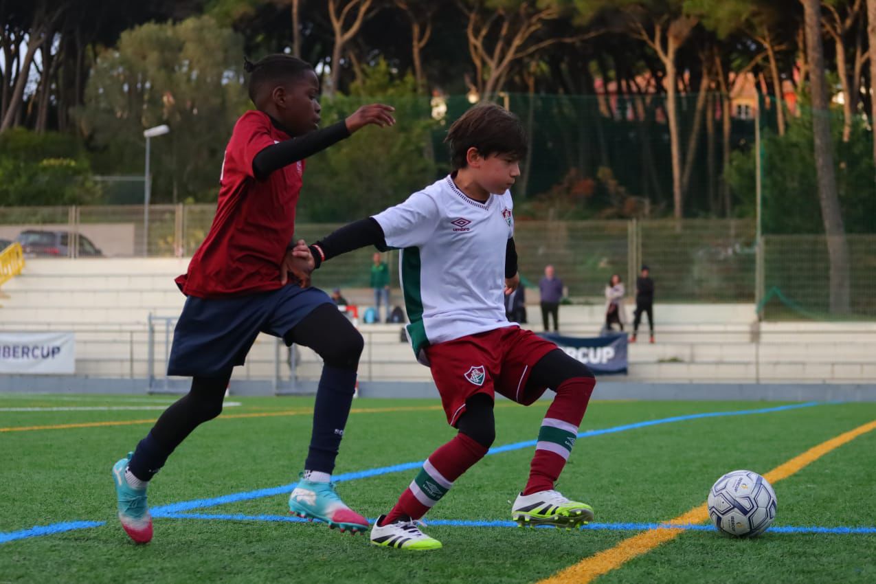 O primeiro dia de disputa da Ibercup, em Portugal, reservou vitórias e momentos inesquecíveis para os mais de 60 meninos e meninas que embarcaram na Flu Experience para representar o Fluminense na competição. Cada uma das cinco categorias entrou em campo duas vezes nesta quarta-feira (17/12). Foram seis vitórias do Tricolor, com duas das equipes com 100% de aproveitamento.Os mais novos, composto por atletas nascidos em 2016 e dirigido por Fabiano Francisco, derrotaram o Casa Pia (POR) por 4 a 0 e, depois, o Bless Academy (POR) por 6 a 2. Já os mais velhos (2007), do técnico Daniel Pinheiro, venceram o Cruzeiro por 3 a 1 e o ADCEO (POR) por 1 a 0.A geração 2014, do técnico João Paullo Ferraz, estreou com vitória por 3 a 2 sobre o CF Os Unidos (POR), mas depois acabou superado pelo AFD Torre A. O time de nascidos em 2011, comandado por Jorge Lucas, perdeu para o FC Alverca, mas se recuperou e venceu o Santos na segunda rodada. O time 2013, por sua vez, tem duas derrotas, para FC Alverca e Cruzeiro.A competição segue nesta quinta-feira (18/12), com as últimas rodadas da fase classificatória. As semifinais e finais estão marcadas para sexta (19/12) e sábado (20/12).“O saldo é muito positivo. Esses meninos e meninas puderam vivenciar exatamente aquilo que o projeto propõe, a experiência do sentir aquilo que nossos atletas passam em Xerém, com a responsabilidade e a cobrança de representar as cores do Fluminense. A viagem tem sido muito boa, com momentos que eles vão levar para o resto da vida. E todo o aprendizado que eles vêm tendo ao longo do processo já pudemos ver em campo hoje. Que amanhã seja um dia de mais vitórias”, disse o técnico Jorge Lucas.Experiência única no Real Madrid, Atlético de Madrid e BenficaA Flu Experience 2025 começou na semana passada, quando o grupo embarcou para a Espanha. Lá, a molecada fez um tour no Santiago Bernabéu, estádio do Real Madrid, e participou de uma verdadeira imersão no Atlético de Madrid, com visita ao estádio Metropolitano e uma sessão de treinos no CT da equipe, dirigida por treinadores do clube colchonero. Depois, o grupo seguiu viagem para Portugal, onde, na terça-feira (16/12), fez mais um treinamento, desta vez no CT do Benfica, em Lisboa.Embora os times sejam comandados por treinadores de Xerém, o projeto não está associado às categorias de base do Fluminense. Portanto, qualquer menino ou menina na faixa etária entre 8 e 18 anos teve a oportunidade de representar o Flu na viagem.O projetoA Flu Experience, promovida em parceria com a IEsports, oferece a oportunidade de crianças e jovens não federados viverem uma verdadeira experiência do que é ser um atleta de Xerém e representar o clube em uma competição internacional. No pacote estão inclusos itens como acomodação, passagem aérea, seguro de saúde internacional, taxas de inscrição do torneio, treinamentos, transporte interno nos países da viagem, alimentação e uniforme para jogadores (kit completo).A Ibercup é considerada uma das mais importantes competições do futebol juvenil por proporcionar uma experiência internacional e multicultural a jovens não federados.Fotos: Maria Azeredo/Flu ExperienceTexto: Comunicação/FFC