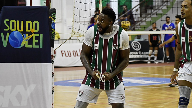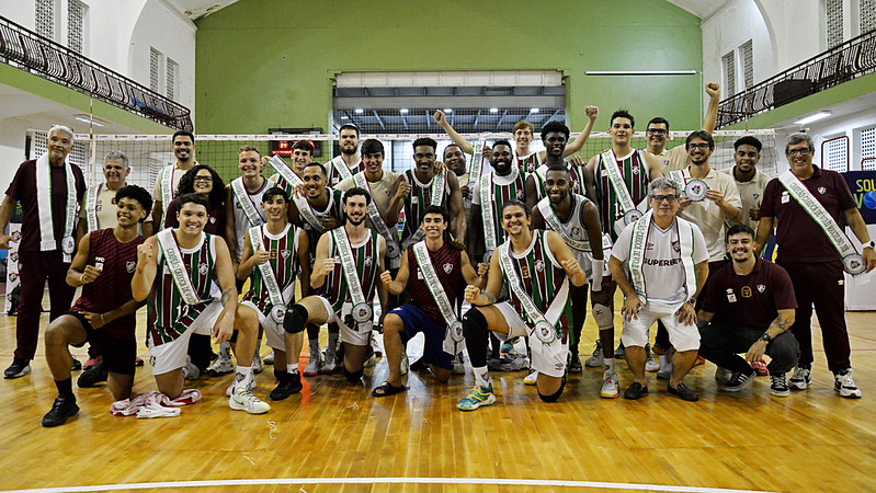 O Fluminense venceu o Apade Vôlei por 3 sets a 1, parciais de 25/21, 25/11, 15/25 e 34/32, neste sábado (07/03), em jogo válido pela 13ª e última rodada da fase classificatória da Superliga B Masculina, no Ginásio João Coelho Netto, em Laranjeiras. Com o resultado, o Tricolor chegou a 24 pontos, ficou com a quinta colocação na tabela e vai enfrentar o Araguari Vôlei nas quartas de final da competição.Com um início muito forte influenciado pelo saque e pelo alto aproveitamento de contra-ataques, o Fluminense abriu 2 a 0 no placar com facilidade. O Apade Vôlei reagiu no terceiro set, mas o Tricolor voltou a sacar bem e conseguiu a vitória em um quarto set decidido no detalhe.“Começamos muito bem na partida, trocou o levantador adversário no terceiro set e deu uma mudada no jogo. Demoramos um pouco para entender e também perdemos um pouco de paciência na virada de bola. No final, com o saque, conseguimos voltar para o jogo e conseguimos a vitória. Vamos pegar Araguari nas quartas, é um jogo difícil, mas vamos fazer o primeiro jogo dentro de casa e vamos lá buscar o resultado que a gente precisa”, analisou o técnico Hylmer Dias.Após a partida, a equipe ainda recebeu faixas comemorativas em homenagem à conquista do título do Campeonato Carioca.As quartas de final contra o Araguari serão disputadas em dois jogos, com a realização de um golden set caso cada time vença uma partida. Ainda não há datas definidas para os confrontos.Texto: Comunicação/FFCFotos: Mailson Santana/FFC