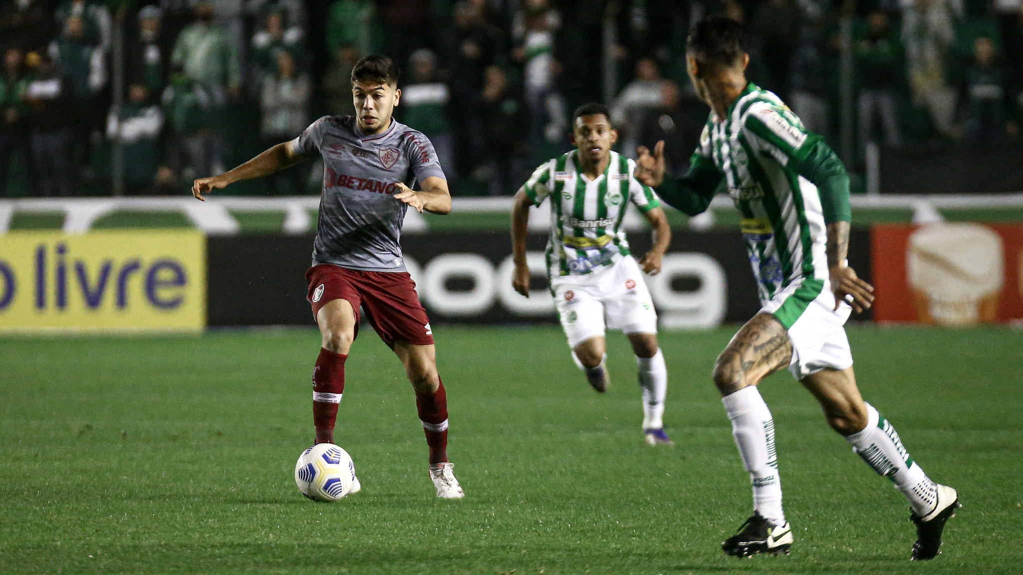 O Fluminense iniciou a partida trocando muitos passes no meio-campo e aos poucos foi se lançando ao ataque. A primeira finalização aconteceu aos 4 minutos. John Kennedy fez boa jogada e acionou Yago, que rolou para Calegari chegar batendo de primeira, mas a bola saiu por cima do travessão. No lance seguinte foi a vez de Lucca bater firme para boa defesa do goleiro. Apesar da superioridade tricolor, o Juventude abriu o placar aos 17, com Vitor Mendes.