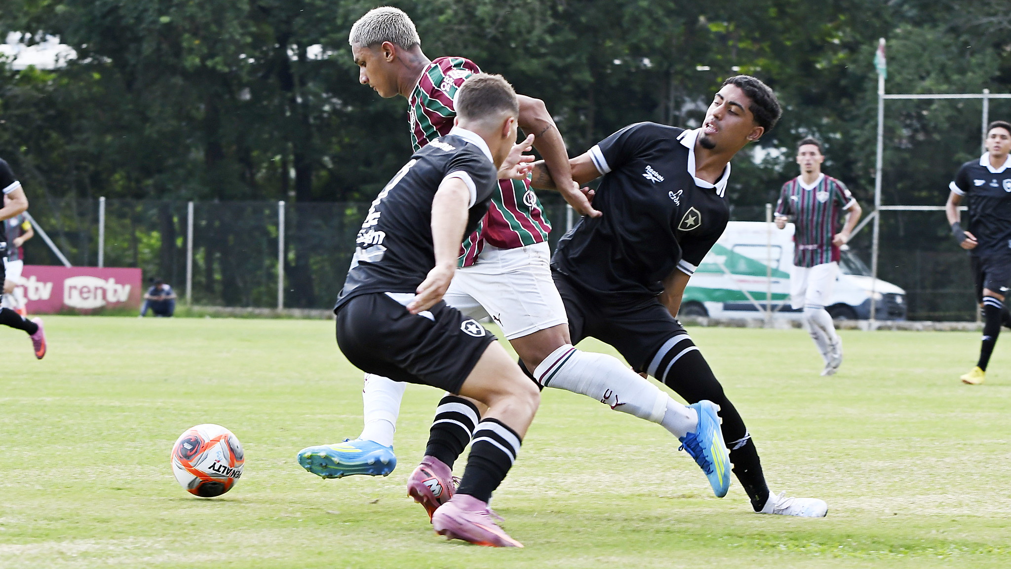 O Fluminense confirmou neste sábado (04/04) a liderança invicta do Grupo A da Copa Rio Sub-20. Em jogo válido pela sétima e última rodada, o Tricolor empatou em 1 a 1 com o Botafogo, no Estádio Marcelo Vieira, em Xerém, e eliminou o atual campeão. Naarã Lucas balançou a rede para os donos da casa, ampliando para oito jogos a invencibilidade da categoria.Leia mais: Jean Carlos e Crystian Gabriel comandam classificação do Brasil para final do Torneio Internacional de Montaigu Sub-16Os Moleques de Xerém jogaram o primeiro clássico da campanha já classificados para a semifinal. Com o resultado, o Flu chega a 17 pontos e disputa vaga na grande final contra o segundo colocado do Grupo B: Vasco ou America.