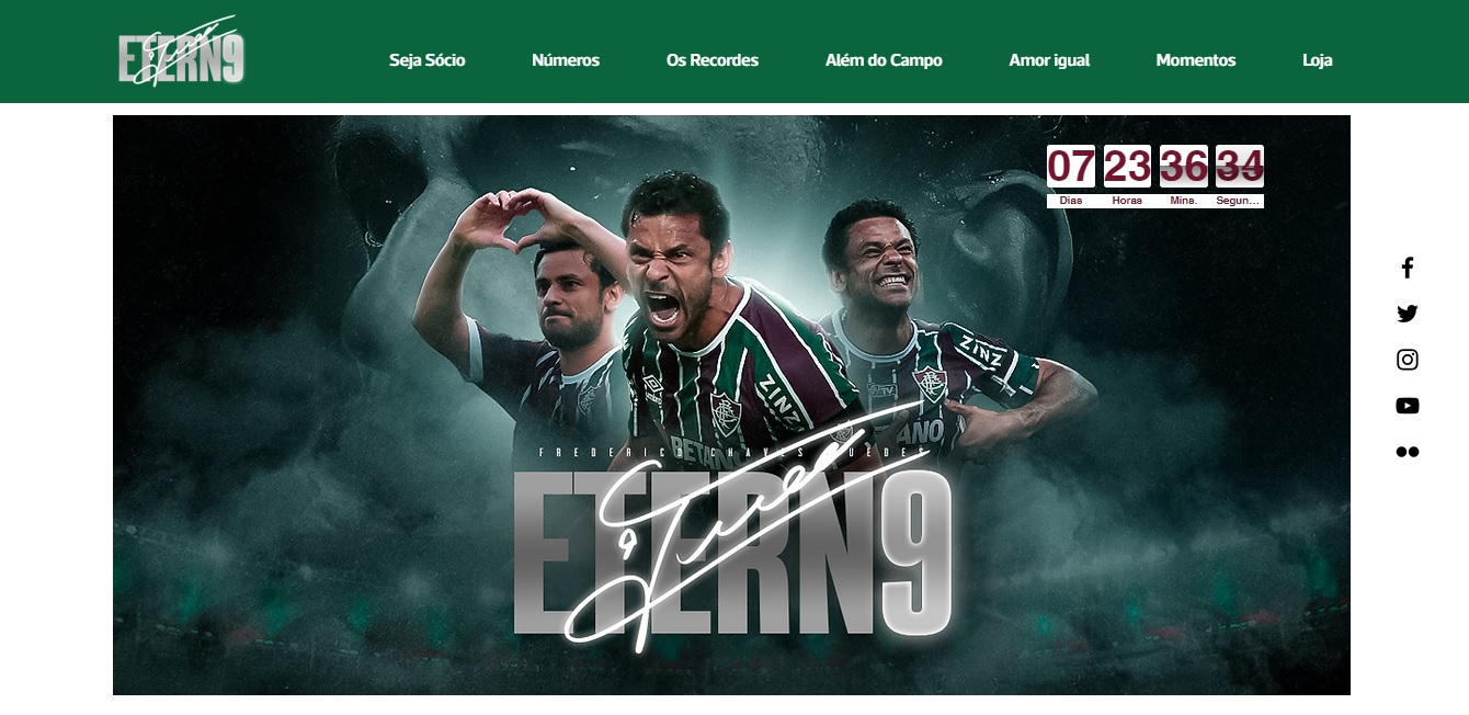 Falta muito pouco para um dos maiores ídolos da história do Fluminense se despedir dos gramados. Para entrar no clima da grande festa que Fred terá no próximo dia 9 de julho, quando entra em campo pela última vez como jogador de futebol profissional, o Tricolor preparou um site especial.Em fredetern9.com.br, os torcedores encontrarão tudo sobre a história do eterno capitão tricolor. Desde números, recordes e histórias emocionantes, o site traz também uma nostálgica galeria de fotos dos principais momentos do atacante desde sua chegada ao clube, em 2009. Há também produtos oficiais para o torcedor adquirir diretamente da Loja do Fluminense.O lançamento do site dá início à contagem regressiva para o jogo de despedida do atacante, contra o Ceará, no sábado da próxima semana, dia 9 de julho, às 19h, no Maracanã. Mais de 55 mil torcedores já estão confirmados para o confronto até o momento.