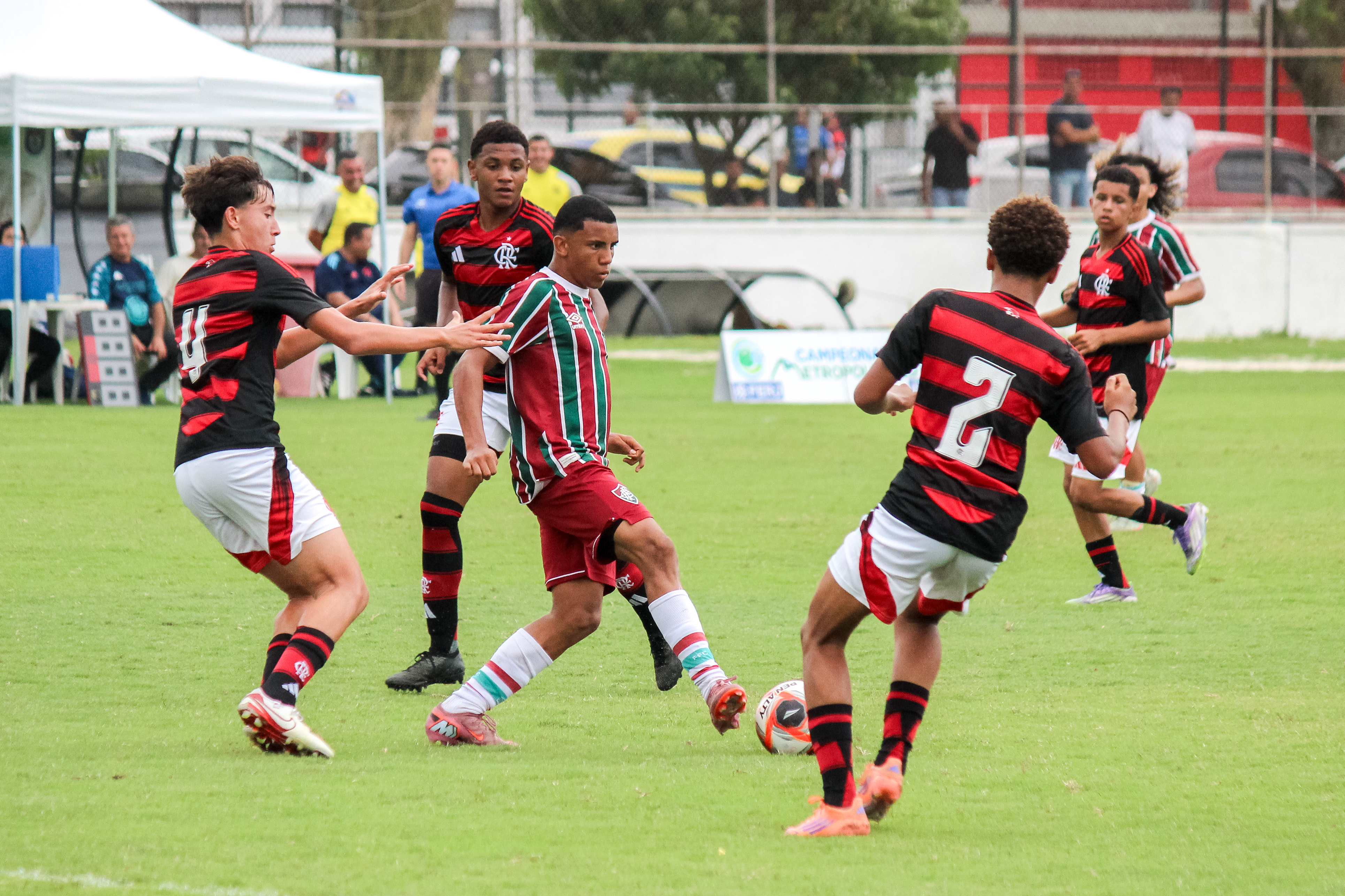 Os Moleques de Xerém levaram a melhor no Fla-Flu que decidiu a Taça Rio Sub-13. Sem sair do zero nos jogos de ida e volta, o Fluminense derrotou o Flamengo nos pênaltis, neste domingo (23/11), na Gávea, por 5 a 4, pela grande final do returno do Campeonato Metropolitano, o Estadual da categoria.Isaac Gabriel, Miguel Matias, Ruan Guilherme, Miguel Barros e Lucas converteram suas cobranças, enquanto Filipe, nomeado melhor goleiro da competição, fez duas defesas.Leia mais: Gol mais rápido, artilheiro e melhor ataque e defesa: o título da Copa Rio Sub-15