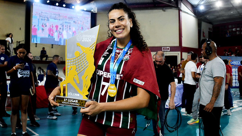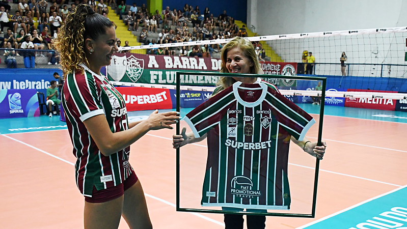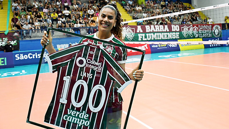 A central Lays completou 100 jogos pelo Fluminense na vitória contra o Osasco São Cristóvão Saúde, no dia 28 de novembro, pela oitava rodada da Superliga Feminina. Em sua quarta temporada pelo Tricolor, a atleta destacou sua gratidão pelo clube e a emoção de ter recebido uma homenagem das mãos de sua mãe, Miralva Maria.Segunda atleta mais longeva do elenco atual, atrás apenas de Lara, Lays chegou ao Fluminense na temporada 2021/22 e logo se identificou com o clube. A central destacou a importância da marca e exaltou sua gratidão pelo Tricolor.“É muito importante para a minha carreira. Quando cheguei aqui, não imaginei conquistar tudo que conquistei pelo Flu. Passa um filme na cabeça, foi tudo muito natural. Cheguei nova aqui, era meu segundo ano como titular no adulto. Me olhar hoje ao conquistar esses 100 jogos e ver a mulher que me tornei, me dá muito orgulho. Sendo com a camisa do Fluminense, que foi um amor à primeira vista, tanto pelo clube quanto pela torcida, é uma gratidão gigantesca”, disse Lays.Com 100 jogos pelo Tricolor divididos em duas passagens, a camisa 7 viveu diversos momentos especiais desde que chegou ao clube. Campeã carioca e terceira maior bloqueadora da Superliga na temporada passada, Lays elencou seus momentos mais marcantes com a camisa do Fluminense.“Um dos jogos mais importantes foi o meu primeiro aqui. Entrei em quadra e me arrepiei inteira, porque foi a primeira vez que senti o amor e o que é ser Fluminense. Isso me marcou muito. Outro jogo especial foi a final do Carioca no ano passado, porque eu tinha acabado de voltar e logo conquistar o título, que é muito importante para a gente, foi muito especial”, declarou.Na partida contra o Osasco, Lays recebeu de sua mãe, Miralva Maria, uma camisa emoldurada com seu nome e o número 100, referente à quantidade de partidas pelo clube. A central comentou sobre a homenagem e o significado de sua mãe ter participado do momento.“Foi muito especial esse dia, ainda mais pela presença da minha mãe. Desde o meu primeiro contato com o vôlei, ela que me iniciou. Tê-la me entregando a camisa representa muito sobre tudo, sobre minha história com o Fluminense, tudo fez sentido, todas as escolhas que fiz me deixaram muito completa”, falou.Lays é peça importante da equipe, que ocupa a sexta colocação da Superliga Feminina, com uma campanha de seis vitórias em oito jogos. O próximo compromisso do Fluminense é na terça-feira (09/12) contra o Sesc RJ Flamengo, em jogo atrasado da segunda rodada da competição, às 21h30, no Hebraica.Texto: Comunicação/FFCFotos: Mailson Santana e Marcelo Gonçalves/FFC