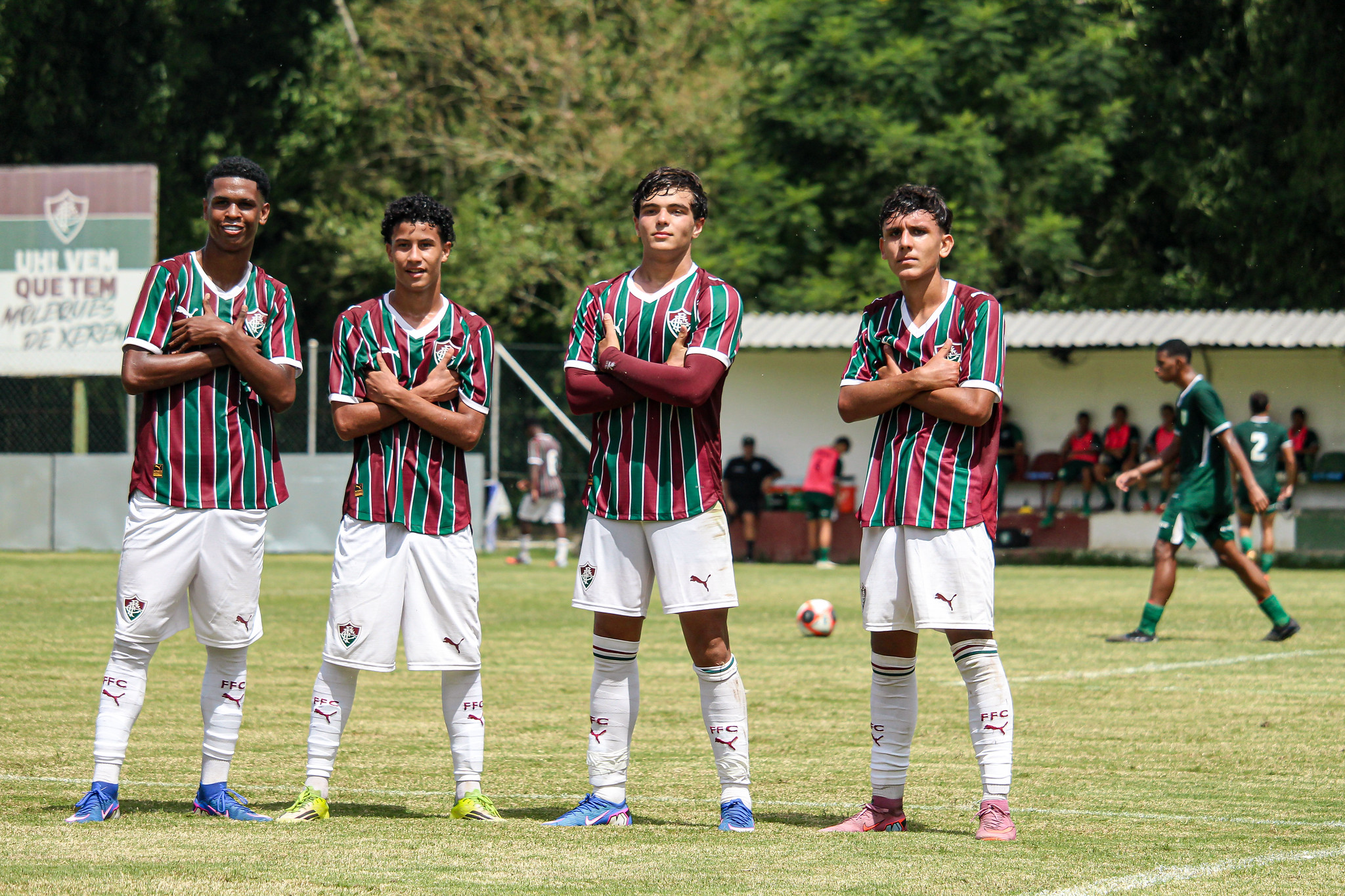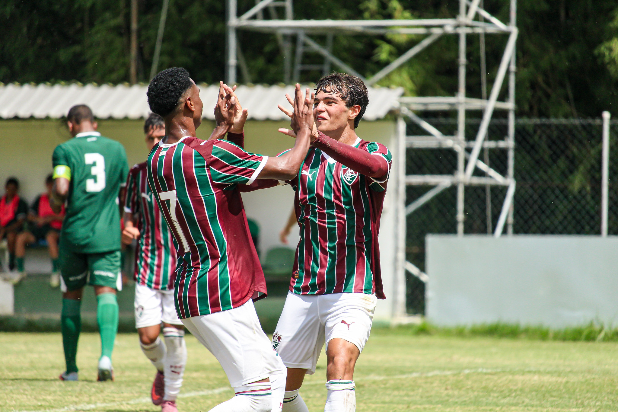 Sub-15 tricolor garante invencibilidade e fatura ponto extra nos pênaltisA molecada do técnico Dalmo Gimenes abriu a jornada dupla com empate em 1 a 1. Abner Vinícius, cobrando falta pela direita, inaugurou o marcador aos 18 minutos com seu primeiro gol. O rival, que chegou a ter um jogador expulso, buscou a igualdade nos acréscimos da primeira etapa.O Fluminense venceu por 4 a 3 a disputa de pênaltis pelo ponto extra, com direito a defesa decisiva de Miguel Alcântara, de volta do departamento médico. O artilheiro Samuell e o estreante Theo converteram suas cobranças, assim como Joca e Coutinho.