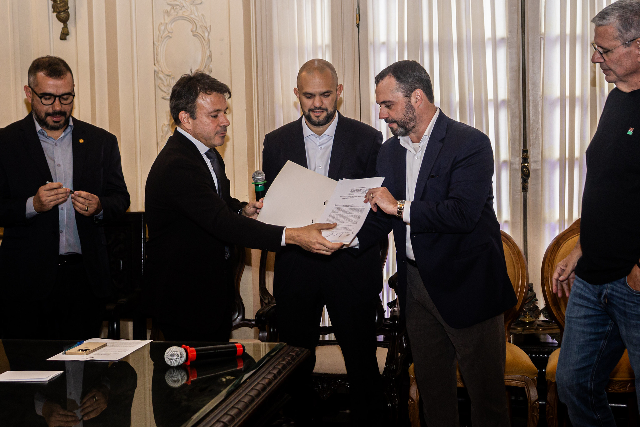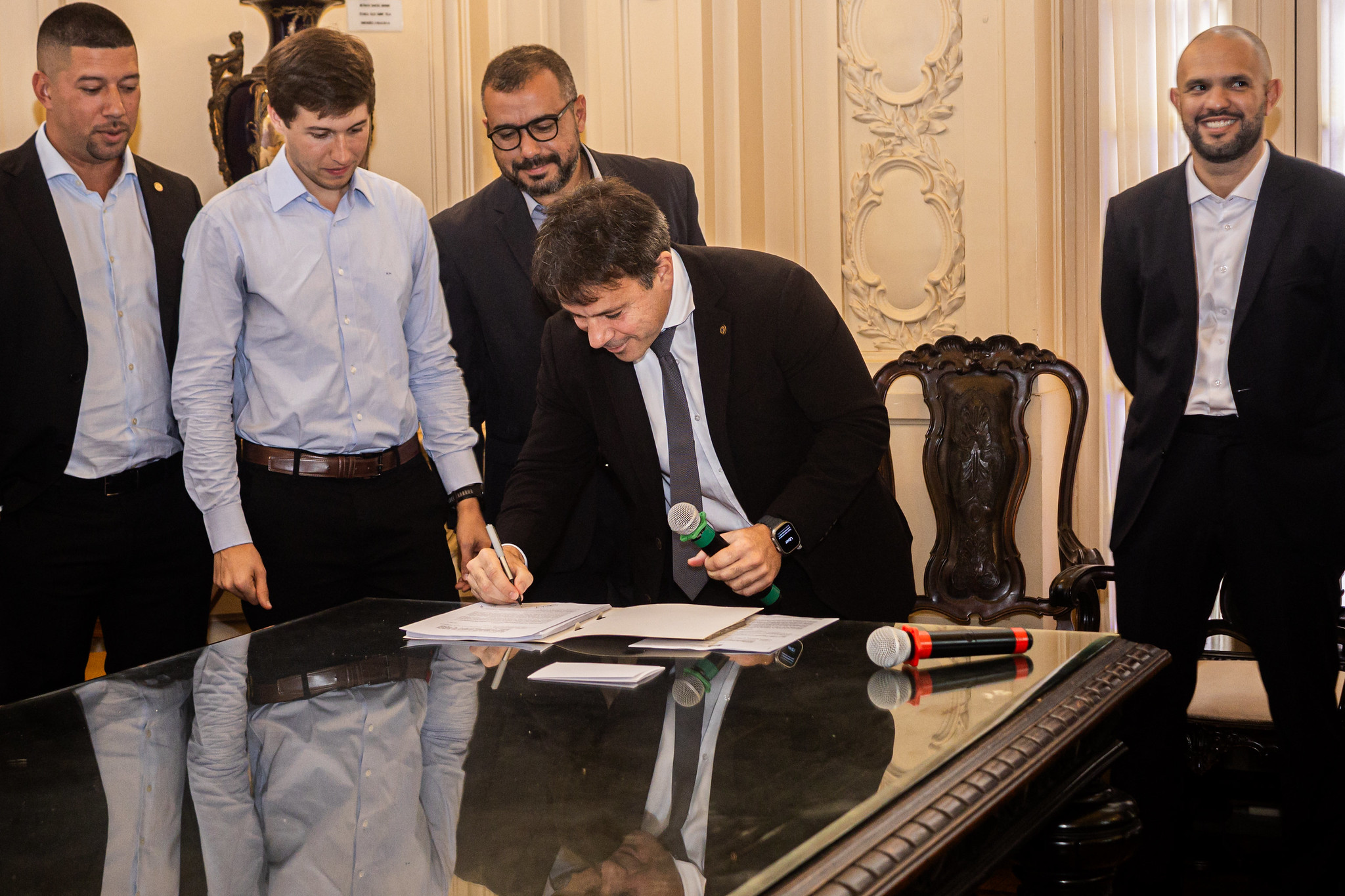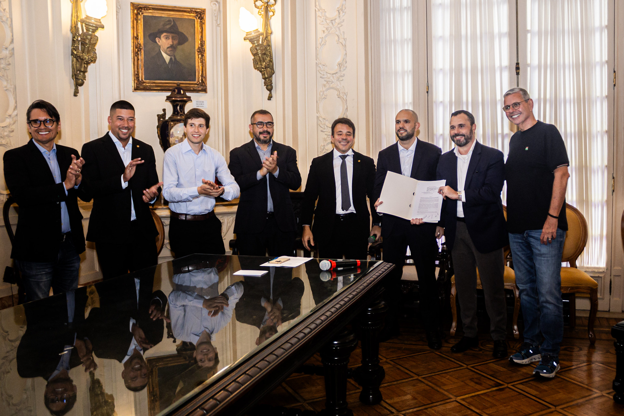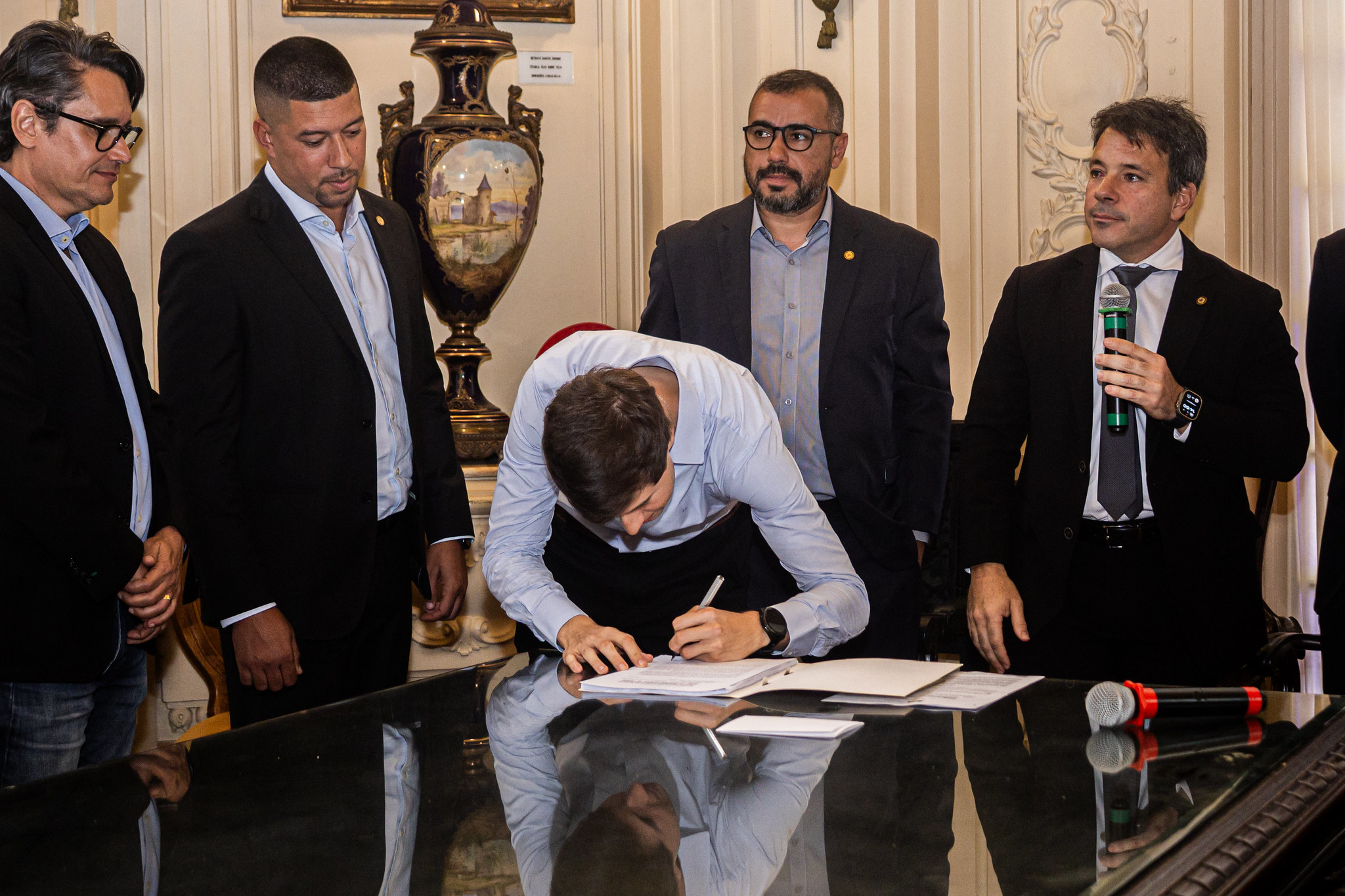 O plano de revitalização de Laranjeiras começou a se materializar na tarde desta terça-feira (18/11). O projeto de lei (PL) do potencial construtivo da área, que abrange estádio e a sede social histórica, foi apresentado formalmente pelo presidente da Câmara Municipal do Rio, Carlo Caiado, e seguirá para análise dos vereadores. O projeto tem coautoria do vereador Flávio Valle.Após a apresentação do documento, um grupo de vereadores recebeu integrantes da diretoria tricolor, entre eles o presidente Mário Bittencourt, o vice-presidente Mattheus Montenegro e o vice-presidente de Projetos Especiais, Ricardo Tenório, que vêm conduzindo as negociações para a aprovação do projeto.“A gente fica muito feliz de ter conseguido evoluir, que o projeto esteja avançando. Esperamos conseguir a aprovação e os recursos para revitalizar nosso estádio e nossa sede social e concluir a parte de hotelaria do Centro de Treinamento Carlos Castilho”, disse o presidente Mário Bittencourt.A partir de agora, após um período de estudo e avaliação de eventuais emendas, a Câmara discutirá os termos do PL em audiências públicas antes de ser enviado para a sanção da Prefeitura do Rio.“Agora a gente dá um passo importante, de ajudar o Fluminense, que tem uma história muito importante para a nossa cidade. E, estrategicamente, esse projeto de lei que foi apresentado, transfere o potencial construtivo para que seja viabilizada a modernização de Laranjeiras, que tem um impacto muito importante em sua localização, assim como o Centro de Treinamento, que tem um alcance social muito relevante principalmente para a Cidade de Deus”, afirmou Carlo Caiado.Após aprovado, o Fluminense poderá realizar a venda do potencial construtivo de Laranjeiras e usar a verba exclusivamente em infraestrutura. O objetivo é modernizar por completo o Estádio Manoel Schwartz e a sede de Laranjeiras, além de concluir as obras do CT Carlos Castilho.“É um dia histórico para o Fluminense. A gente vem trabalhando neste projeto há muito tempo. O projeto de arquitetura já estava pronto desde antes da eleição de 2022, mas ainda tínhamos um desafio muito grande especialmente no campo político. E nesses últimos três anos a gente vem trabalhando bastante. E hoje, felizmente, depois de todo esse esforço, a gente consegue concluir essa etapa com a formalização do projeto de lei pelos vereadores. É muito importante a gente poder viabilizar os recursos para a revitalização completa do clube, tanto do estádio quanto de toda a parte social”, declarou o vice-presidente Mattheus Montenegro.Um dos autores do projeto, o vereador Flávio Valle destacou a importância social das instituições esportivas para a cidade do Rio de Janeiro.“Esse projeto de lei que a gente apresentou hoje aqui na Câmara Municipal demonstra a maturidade dessa casa de leis de poder contribuir não só com o Fluminense, embora eu e o presidente sejamos tricolores, mas reforça o nosso compromisso com a cidade do Rio de Janeiro. É uma oportunidade de ajudar o clube através de um mecanismo urbanístico, que é a forma como hoje o poder público pode contribuir”, disse o vereador.Um dos responsáveis por conduzir todo o processo de elaboração dos termos do projeto junto à Câmara Municipal e à Prefeitura do Rio, o vice-presidente de Projetos Especiais, Ricardo Tenório, celebrou o importante avanço do plano.“Há três anos o presidente Mário me convocou para essa missão, eu abracei a causa e desde então a gente vem trabalhando junto à Câmara Municipal e ao prefeito Eduardo Paes, com reuniões incansáveis para a elaboração do projeto, específico para o Fluminense, de restauração completa de Laranjeiras e que também contempla o CT. Fico muito feliz e grato por esse momento. Agora vamos para o próximo passo, que é viabilizar tudo isso, conseguindo a aprovação e os recursos para iniciarmos a obra. Foi o primeiro grande passo do projeto”, declarou Ricardo Tenório.Entenda como funciona o potencial construtivoPor ser tombada como patrimônio cultural do Rio de Janeiro, a sede de Laranjeiras não pode ser utilizada em sua plenitude pelo Fluminense. O clube não pode, por exemplo, desenvolver nenhum projeto imobiliário dentro da sua propriedade. Dessa forma, uma maneira de o clube ser recompensado pelo terreno valorizado é a venda do potencial construtivo para a iniciativa privada.O mercado imobiliário, dentro das diretrizes do plano diretor vigente, é quem absorve esse potencial para elaborar projetos em áreas de interesse da prefeitura para desenvolvimento da cidade do Rio de Janeiro. O projeto do potencial construtivo de Laranjeiras foi encaminhado para votação na Câmara dos Vereadores e, se aprovado, o Fluminense poderá receber propostas de empresas interessadas.Texto: Comunicação/FFCFotos: Marina Garcia/FFC