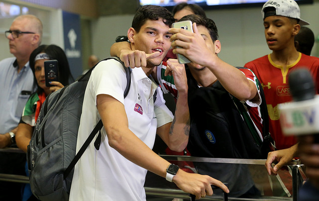 Mais de cem tricolores foram receber o elenco do Fluminense no aeroporto internacional do Rio de Janeiro, no início da tarde desta sexta-feira. Os torcedores reconheceram todo esforço e dedicação da equipe durante a partida contra o Nacional da Bolívia, em Potosí, a mais de 4 mil metros de altitude, que garantiu a classificação do Tricolor para a próxima fase da Copa Sul-Americana. Um dos mais festejados, o lateral Gilberto comentou os efeitos da altitude e disse que a presença da torcida no aeroporto dá força ao grupo para as próximas partidas.
