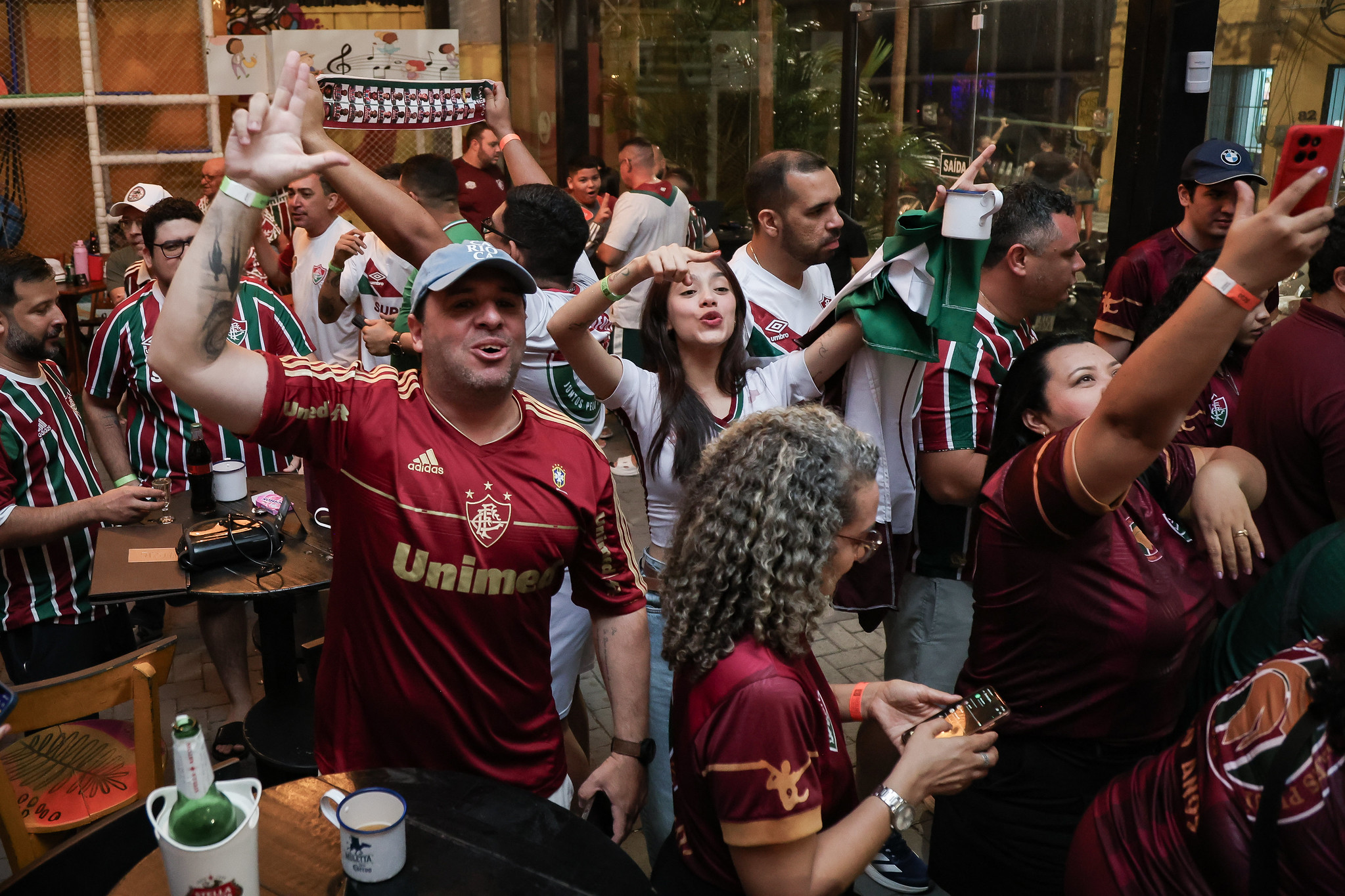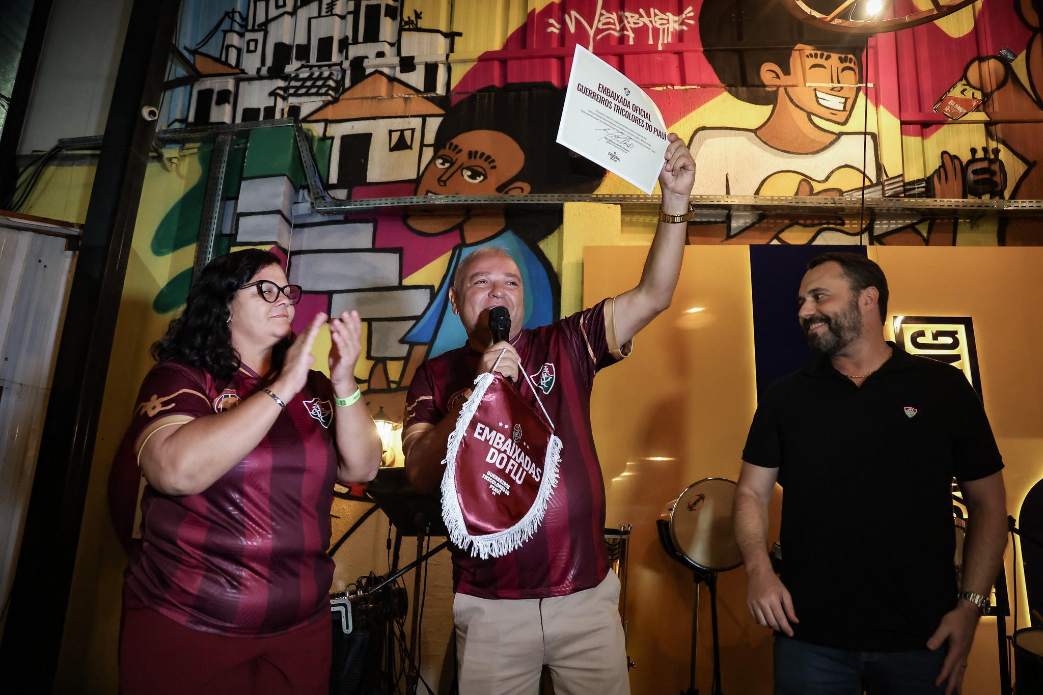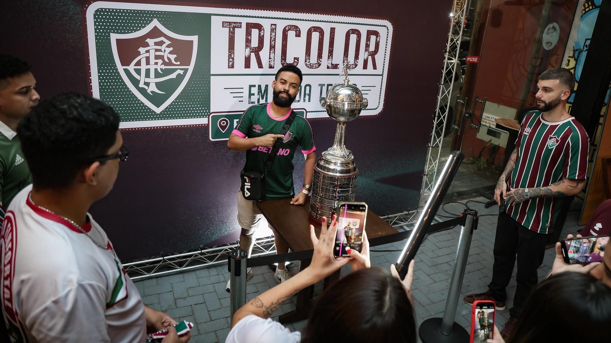 Mais de 150 torcedores do Fluminense se reuniram, na noite deste sábado (01/11), em mais uma edição do Tricolor em Toda Terra em Fortaleza. O evento, que serviu de esquenta para o duelo contra o Ceará neste domingo (02/11), teve como grande atração a taça da Conmebol Libertadores, que esteve exposta para os presentes posarem para fotos.A confraternização, promovida pelo clube no Paraíba Bar 2, contou ainda com muita música ao som do cantor Lukinhas e sorteio de produtos oficiais. Estiveram presentes o presidente Mário Bittencourt e o vice-presidente Mattheus Montenegro.Mário Bittencourt celebrou a reunião de torcedores e lembrou a mobilização dos tricolores mundo afora.“Esse movimento da torcida fora do Rio de Janeiro é muito importante e mostra que o Fluminense é um clube de alcance mundial. Basta lembrar de tudo o que vivemos na Copa do Mundo de Clubes. Isso faz parte do que chamamos de internacionalização da marca. A gente fica realmente muito feliz de ter conseguido, ao longo dos últimos anos, levar esse projeto adiante”, disse ele.O vice-presidente Mattheus Montenegro exaltou a energia dos tricolores do Nordeste e ressaltou a importância de eventos como esse, que, segundo ele, fortalecem o sentimento de pertencimento e aproximam o os torcedores clube.“É sempre muito bom, quando o Fluminense joga fora do Rio, a gente ter a oportunidade de encontrar a torcida local. Hoje aqui em Fortaleza, com tricolores de todo o Nordeste. É uma alegria muito grande ver o clube cada vez mais próximo do seu torcedor. A gente espera que seja o aquecimento para uma grande vitória amanhã, que é muito importante para nos deixar mais próximos de uma vaga na Libertadores”, declarou.O tricolor Ítalo Silva, um dos fundadores da torcida Flu Ceará, festejou o evento e projetou o duelo de domingo.“É uma honra gigantesca poder participar desse evento totalmente lotado, com torcedores do nosso Fluminense aqui no Ceará e de outros estados da Região Nordeste. É um evento muito bacana e espero que a gente possa fazer bonito no Castelão”, afirmou.Neste domingo (02/11), o Fluminense entra em campo às 16h para enfrentar o Ceará, no Castelão, em jogo válido pela 31ª rodada do Campeonato Brasileiro. O Tricolor abriu a rodada no G-6 da competição.Fotos: Marcelo Gonçalves/FFCTexto: Comunicação/FFC